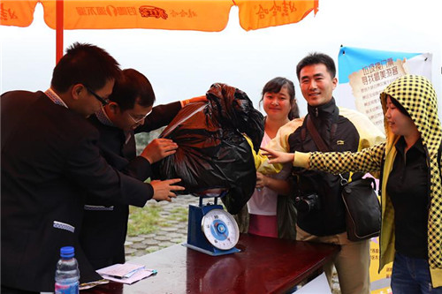 图为“十一”期间恩施大峡谷“垃圾换门票寻找最美游客”活动现场