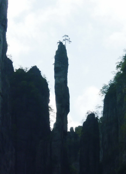 恩施大峡谷的山大部分是沉积岩和页岩,像谁一层层磊起来的一样,岩石与岩石之间有缝隙,这就为植物的生长提供了生根之处,行程中我发近距离观察了好几处小树是如何生根的。鞠躬松就是长在一座山的侧面,有点像